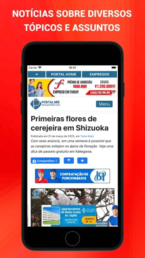 Este é o aplicativo mobile do site de notícias Portal Mie, que publica informações diversas sobre a sociedade japonesa para os brasileiros, além de promoções, ofertas de emprego e conteúdos exclusivos de serviços para a comunidade estrangeira no Japão.