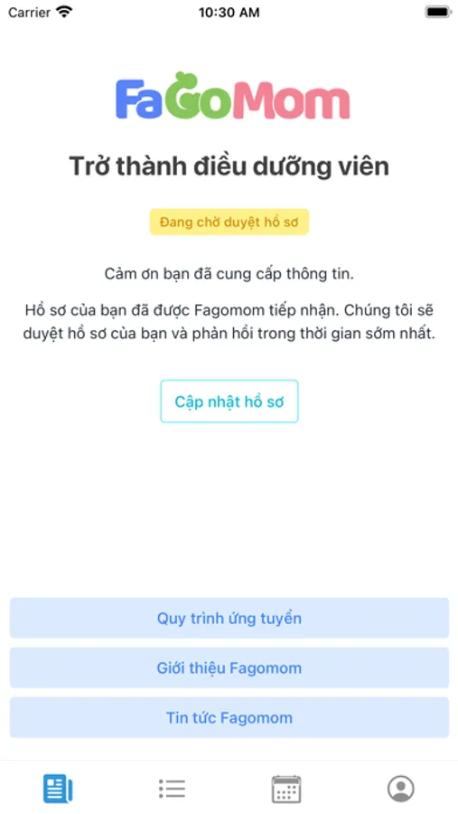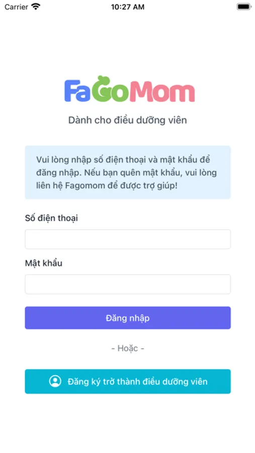 Đây là ứng dụng dành cho các điều dưỡng viên của Fagomom. Dành cho những người có nhu cầu đăng ký trở thành điều dưỡng viên thực hiện các dịch vụ chăm sóc khách hàng là mẹ và bé sau sinh.