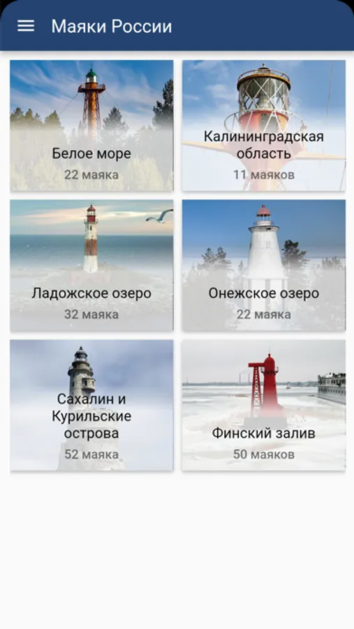 Данное приложение познакомит вас с наиболее интересными маяками России. Удобный функционал позволит вам узнать основные характеристики маяка, прочитать его историю и даже проложить путь к нему в вашем любимом навигационном приложениии.