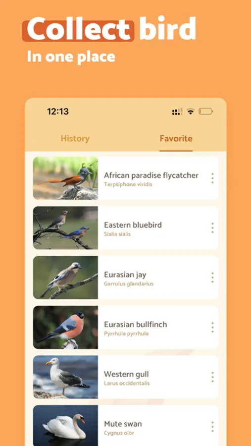 BirdScan will help you save the identified bird, and you can also add your favorite bird to your favorites for easy viewing.