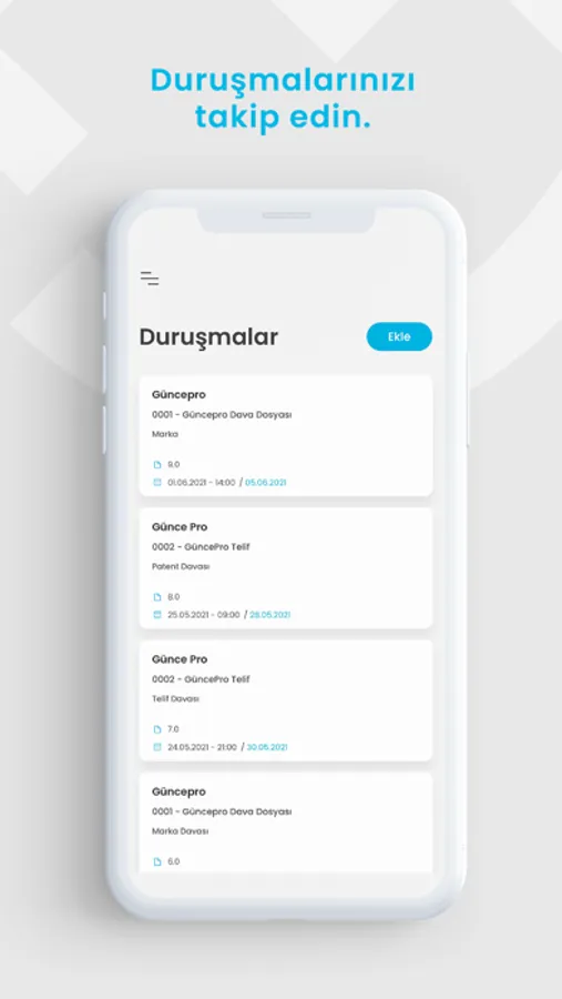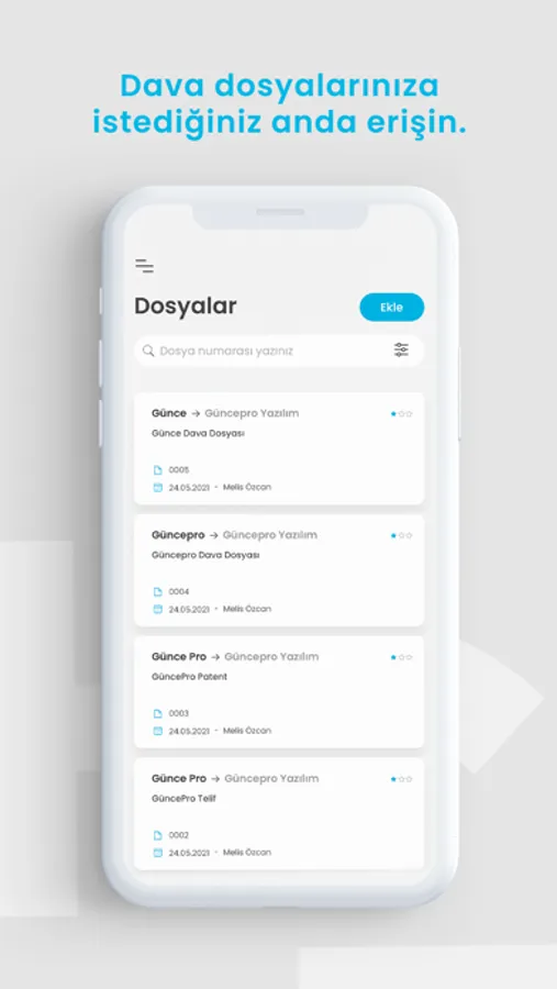 Uygulamamız ile hukuk ve hizmet sektöründe büro ve iş süreçleri yönetimini dijitale dönüştürerek kurumlaşabilir, verimliliği ve büyümeyi artırabilirsiniz.