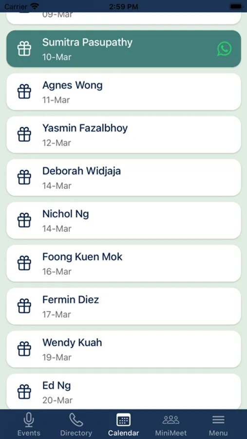 CALENDAR : Calendar of Birthdays, Anniversaries of Members and