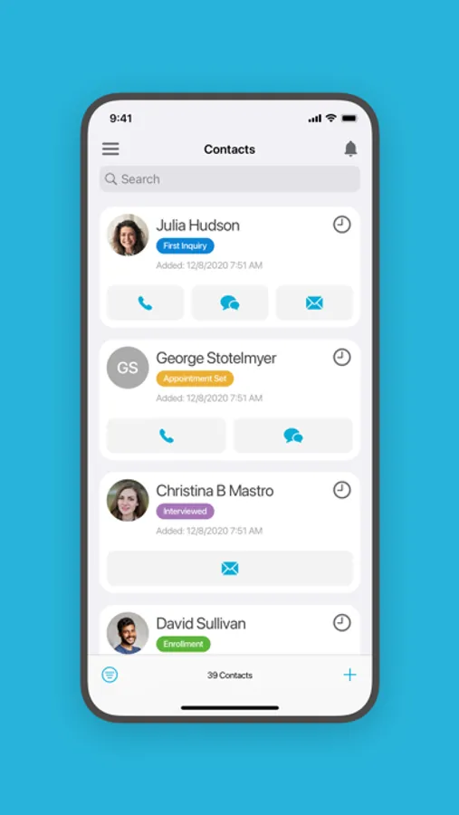 Verity Dialog is a mobile CRM built for Higher-Education institutions. Our mobile features facilitate contact management, calendar events, and multi-channel communication with prospects, active and former students. Staff and faculty can engage in conversations with students via voice, text messages, and email. Banners and instant notifications keep the end user informed of important events, such as new inquiry, upcoming appointment, incoming call or text message, and scheduled callbacks.