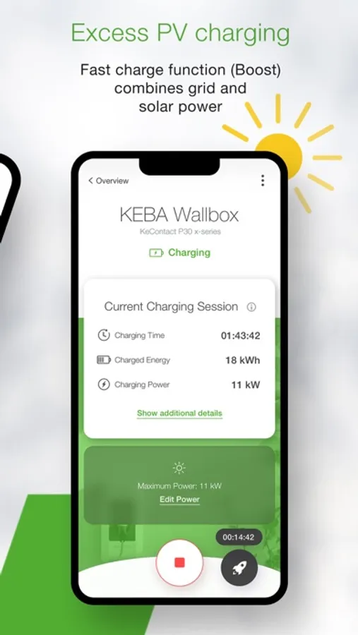 - Control your charging process by starting and stopping the current charging process – simply in one click.