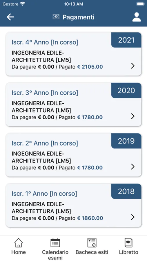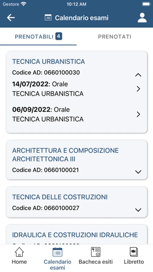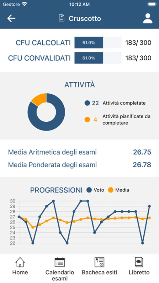 Once logged in, the student will be able to access their profile. Here it will be possible, among other things, to register for an exam, accept the vote, get information about your university career.