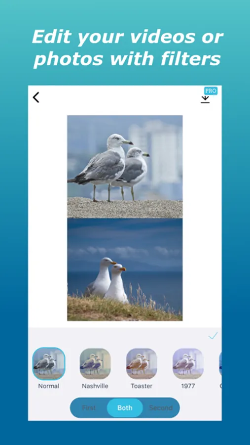 - Up and Down: Select two videos or photos and the video or photo will merge in up and down style.