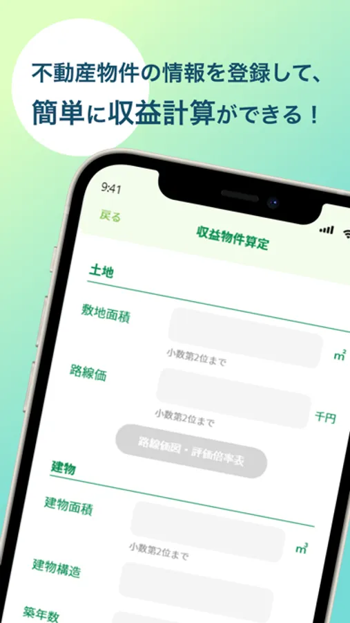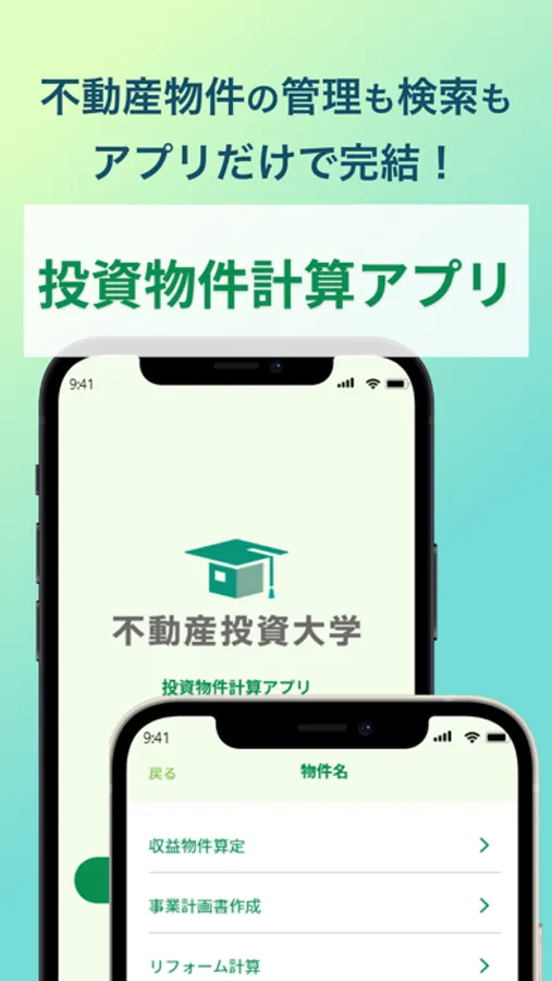 不動産投資に必要な機能が満載の、現役不動産投資家が監修する投資物件計算アプリです。
