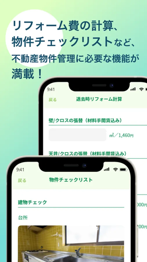 あなたが管理する物件情報を登録して簡単に収益計算したり、物件の状態をチェックして記録することで物件の管理が可能です。登録した情報をメールで送信も可能なので、リフォーム業者など専門業者とのやりとりもスムーズになります。