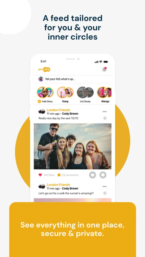 MyIns is a FREE, exclusive private social app that blends your favourite sharing functionalities, allowing you to create private spaces for your inner circles without the privacy concern. We call them INSs; welcome to MyIns - My Inner Circles.