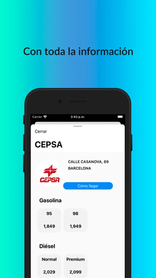 -Favoritos: No pierdas de vista el precio de tus gasolineras preferidas. Siempre sabrás toda su información y cómo llegar a ellas estés donde estés.