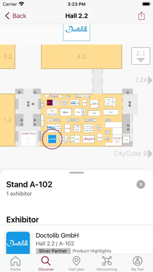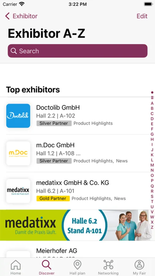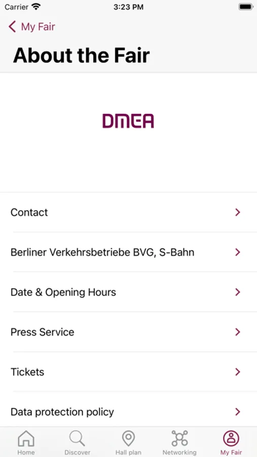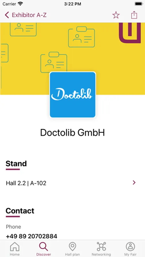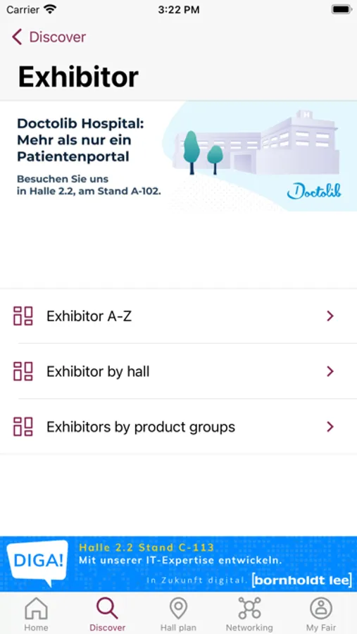 You can create lists of favorites directly in the app or log in with your profile from the DMEA online platform and have your favorites and contacts displayed in the DMEA app as well.