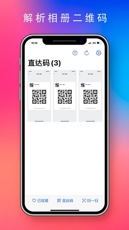 整理相册中的二维码,统一管理,并识别二维码、获取链接。