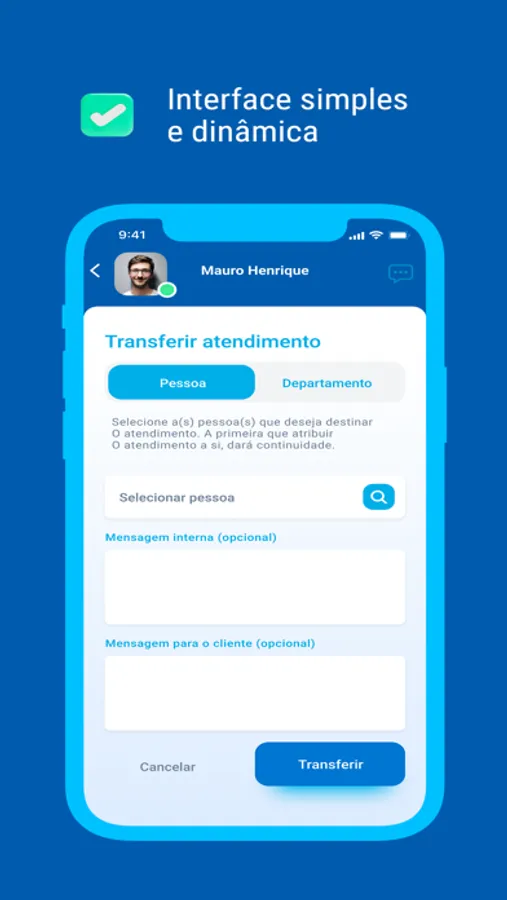 - Transferir atendimentos entre atendimentos ou departamentos.