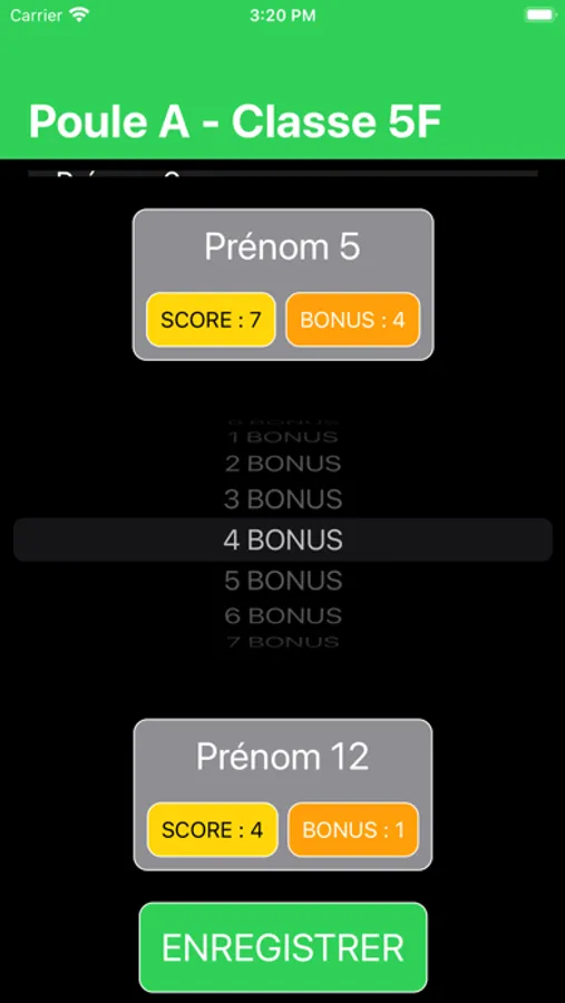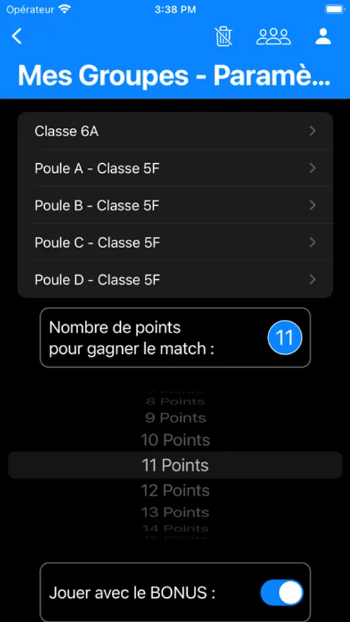 L’App propose également d’utiliser un BONUS. Ce bonus peut être utilisé, comme dans la FPS proposée, comme un « indice de rupture ». Le bonus est accordé si le point est marqué avec une accélération de la balle. Cependant, libre à vous de qualifier ce bonus pour l’associer à votre « point consigne » ou « point compétence » en fonction de vos objectifs poursuivis dans diverses APSA.