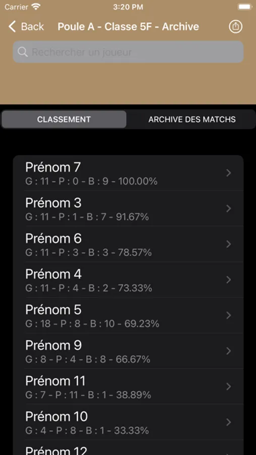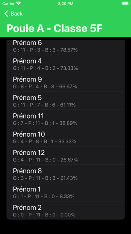 Au départ, j’ai « testé » la FPS avec un fichier Numbers, avec différentes poules, donc différents onglets. Les élèves ont adoré travailler avec le pourcentage d’efficacité. Afin d’améliorer la saisie des résultats (rapidité) et également de trouver un visuel parlant « une jauge d’efficacité », j’ai décidé de créer l’application « Le Pourcentage d’Efficacité ».