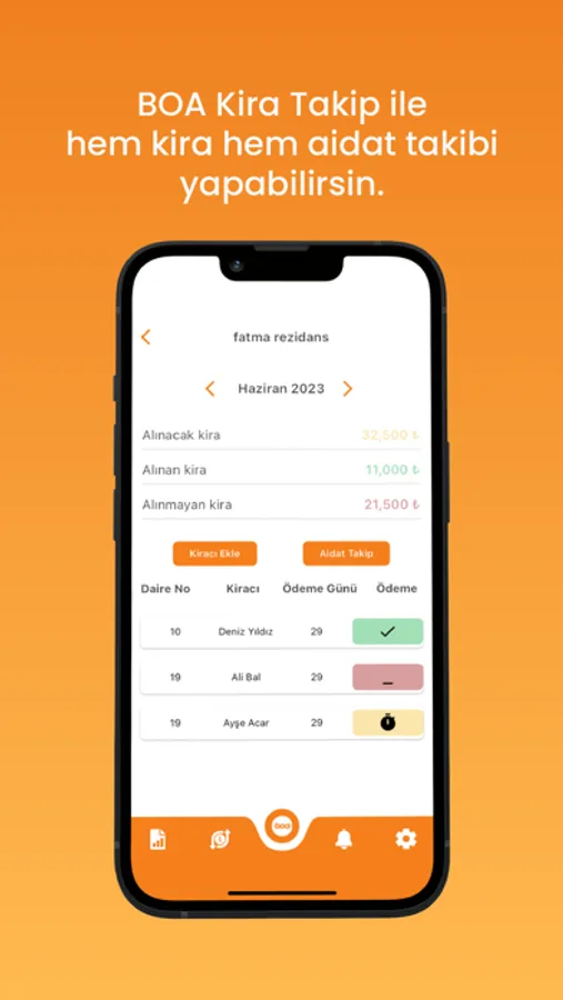 BOA Kira Takip ile kiracılarını, dairelerini ve binalarını yönetebilir; Gelir - Gider yönetimi ile aylık gelir ve giderlerini hesaplayabilirsin. Üstelik hepsi tek bir uygulamada. BOA'yı kullanmaya başla. Hesaplarını kolayca yönet !