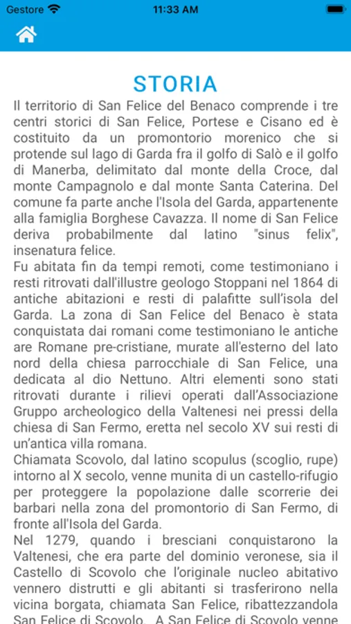• I contenuti delle schede di presentazione del comune sono statici all’interno dell’app e quindi sono sempre fruibili dagli utenti anche in assenza di una connessione internet attiva.