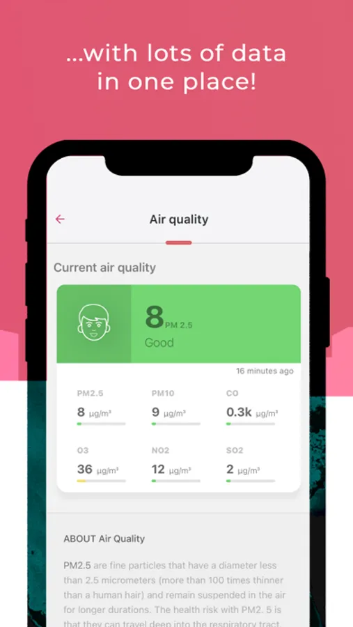 • Air quality - the quality of air in your city is one of the most important parameters to help you best use your free time. Get the most accurate information about the current quality of air in your city and make the correct decisions