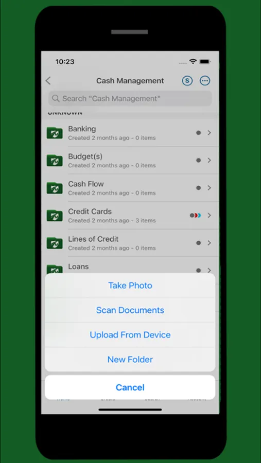 • Upload documents on the go using your camera as a scanner.