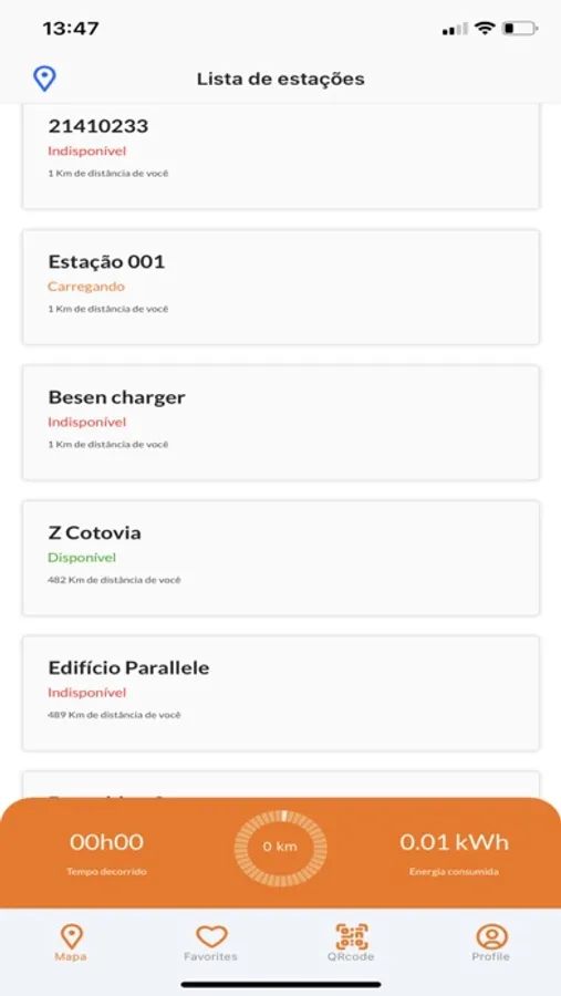 - Veja as estações de recarga mais perto de você