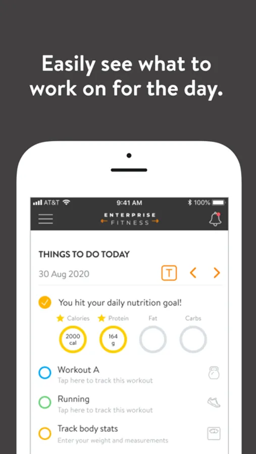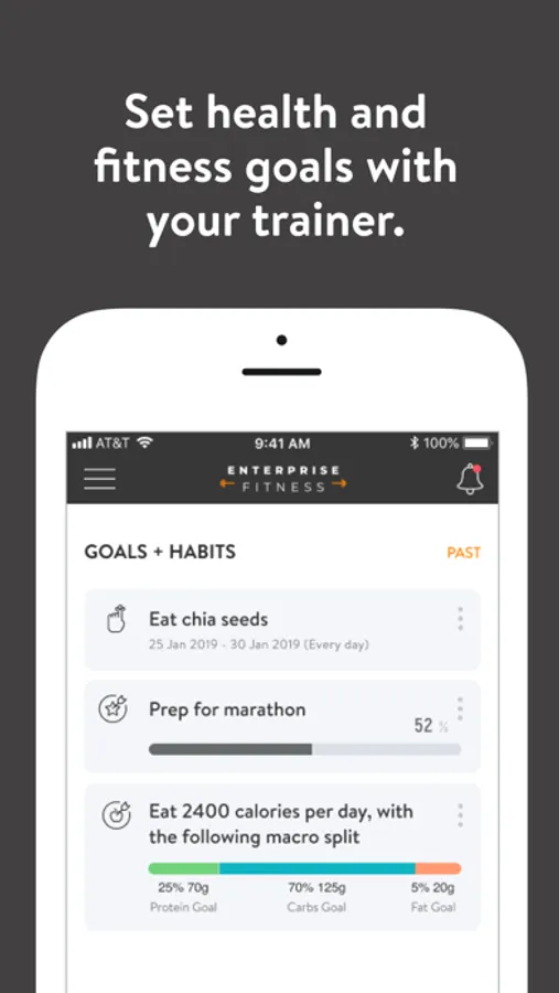 With the Enterprise Fitness App, you can start tracking your workouts and meals, measuring results, and achieving your fitness goals, all with the help of your personal trainer.