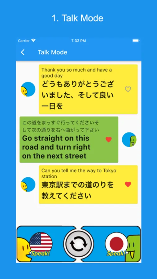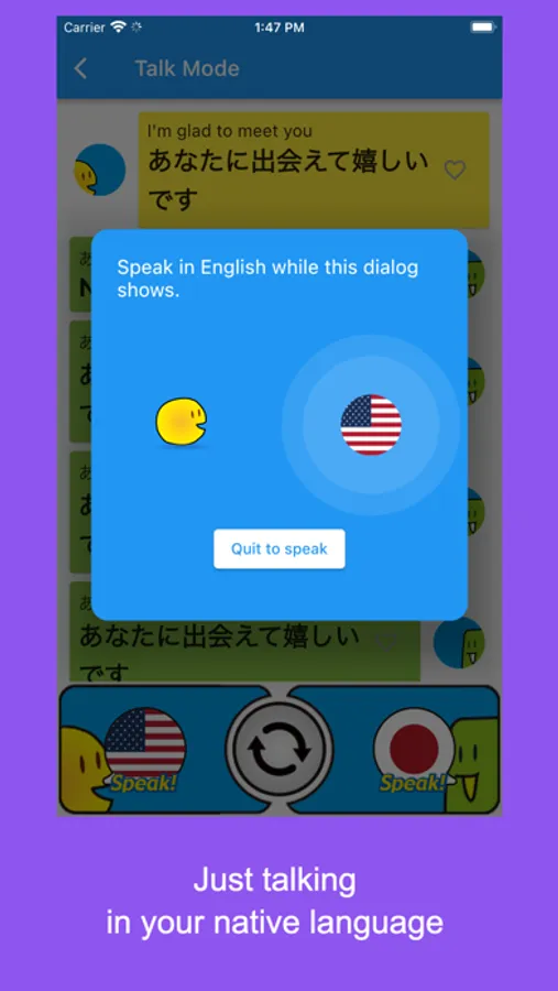 - If you make a call to someone with this app and speak anything in your mother language (e.g.Japanese), the words you spoke will be automatically translated to the receiver's language (e.g.English).