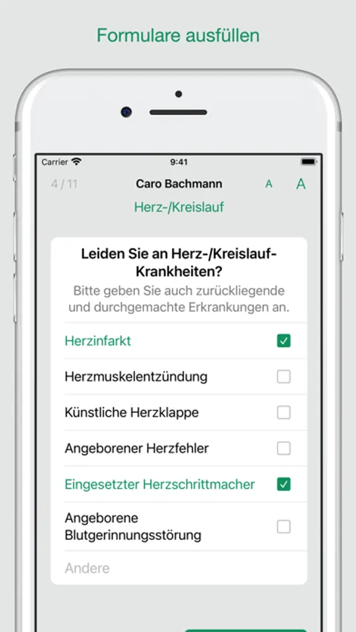 Variable Schriftgröße:Verändern Sie die Schriftgröße in der App unabhängig von den auf dem Gerät hinterlegten Einstellungen. Die Schriftgröße passt sich automatisch anhand des Patientenalters an und wird größer angezeigt, je älter der Patient ist.