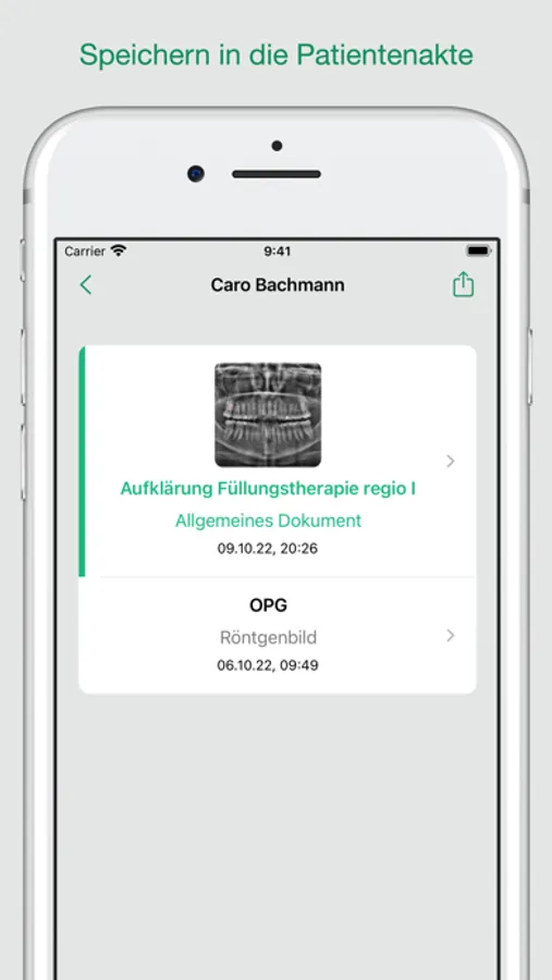 Machen Sie Fotos und scannen Sie beliebige Dokumente mit der App. Die Dateien werden in der teemer-Patientenakte abgelegt.