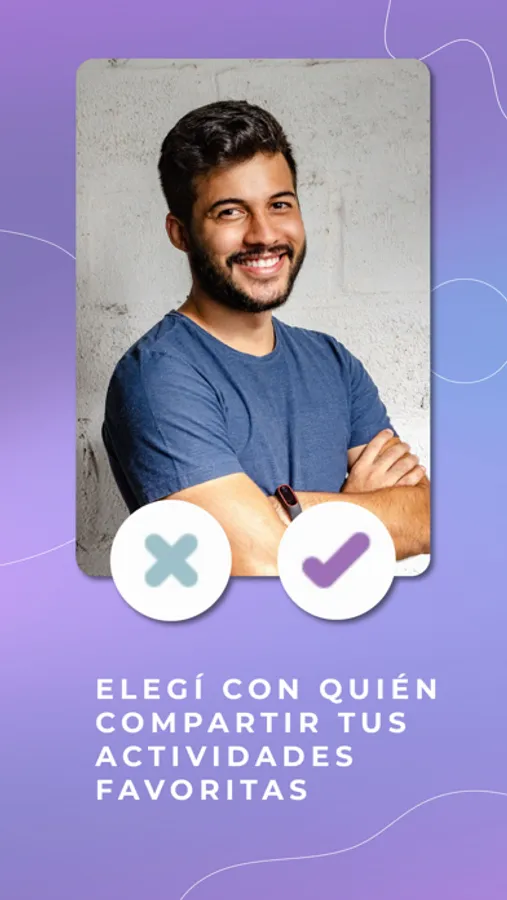 Para entablar conversaciones con otros usuarios, hemos implementado un sistema de "tildes" lo que nosotros llamamos “it`s a partner”. Cuando dos usuarios se interesan mutuamente, deben marcar o dar "tilde" al perfil del otro, creando una conexión auténtica y recíproca.