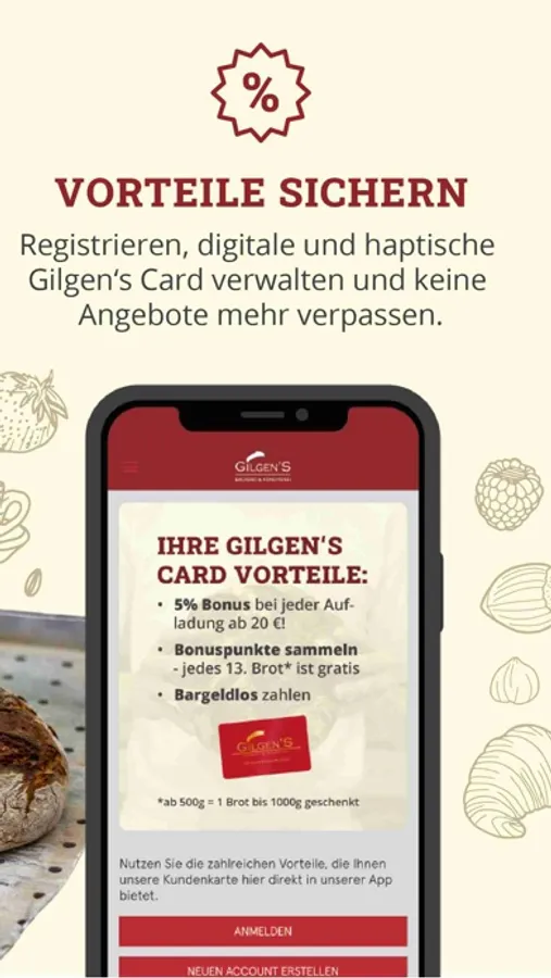 Brotpunkte sammeln war nie einfacher. Ab jetzt können Sie mit der App wertvolle Brotpunkte sammeln, die sie später gegen ein Brot aufs Haus eintauschen können. Gilgen’s Card in der App anmelden, bei jedem Broteinkauf Punkte sammeln und Punktestände und Guthaben in Echtzeit sehen.