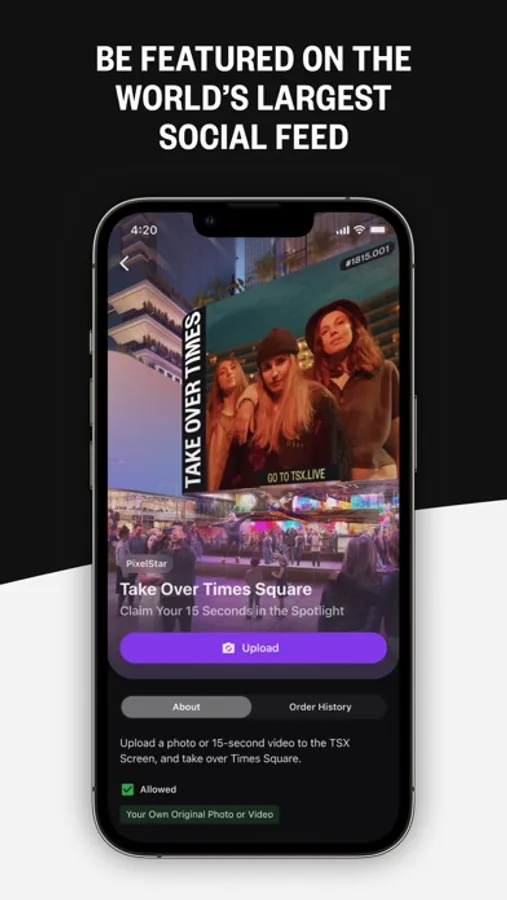Experience PixelStar and feature yourself on our 18,000 sq. ft. interactive screen at the center of Times Square, where anyone, anywhere, can have their 15 seconds of fame on the world's largest social feed.