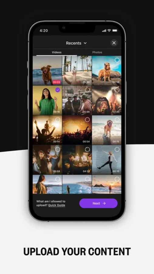 Upload a single photo or short video (at least 15-seconds in length) from your camera roll.
