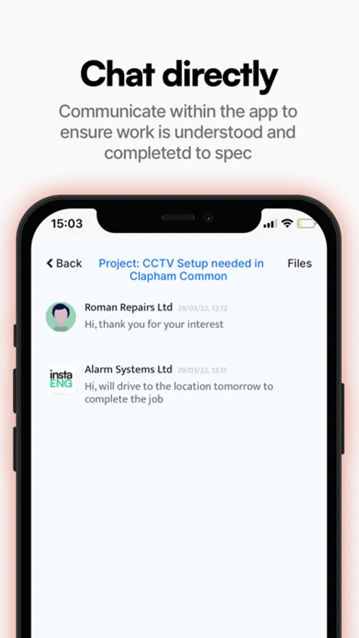Your supplier can keep you up to date on progress through our secure messaging service. Live messaging through the instaENG mobile app.
