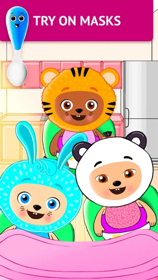 - Wear mommy newborn baby in baby panda, tiger or a rabbit mask. It is mini zoo baby center where you can find baby animal to feed.