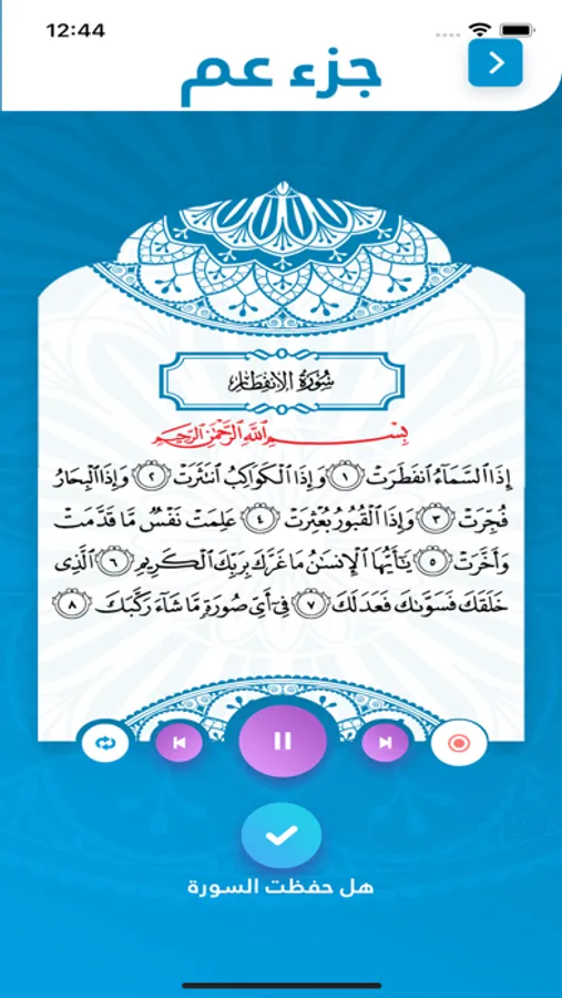 تطبيق متكامل لقراءة القران الكريم وحفظ جزء عمّ