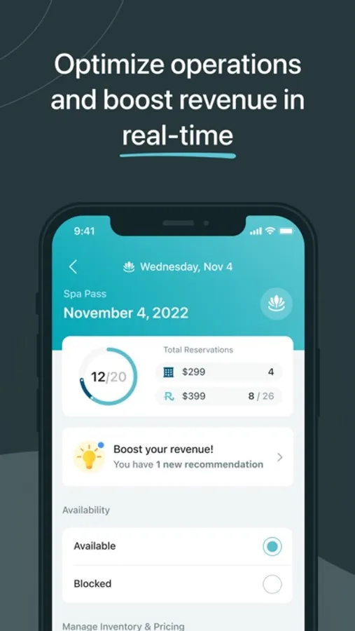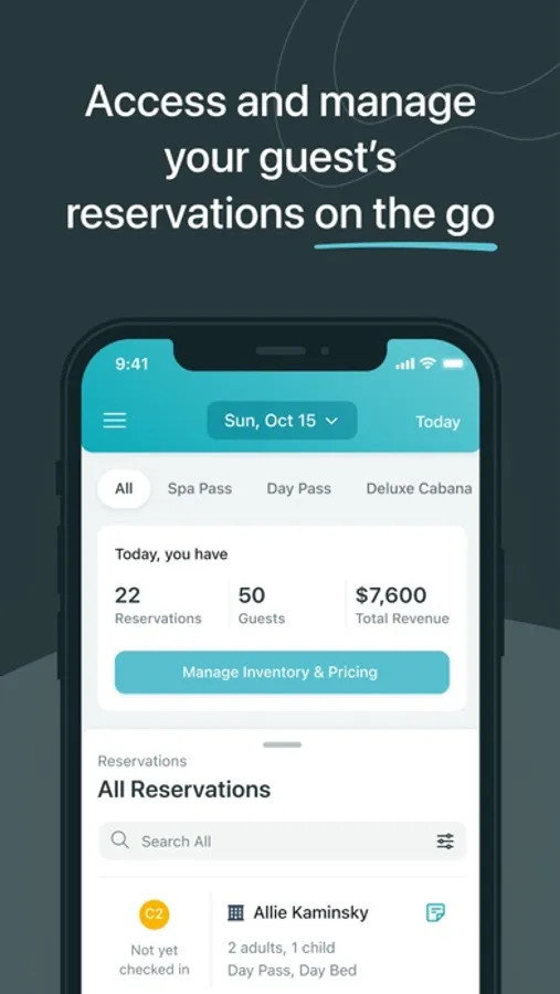 • Optimize revenue and efficiently yield manage inventory for both overnight guests and day guests