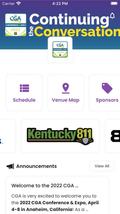 The 2022 CGA Conference & Expo App features helpful information for navigating the event in the Marriott Anaheim. Create your agenda, view sponsors and exhibitors, navigate the property, and more!