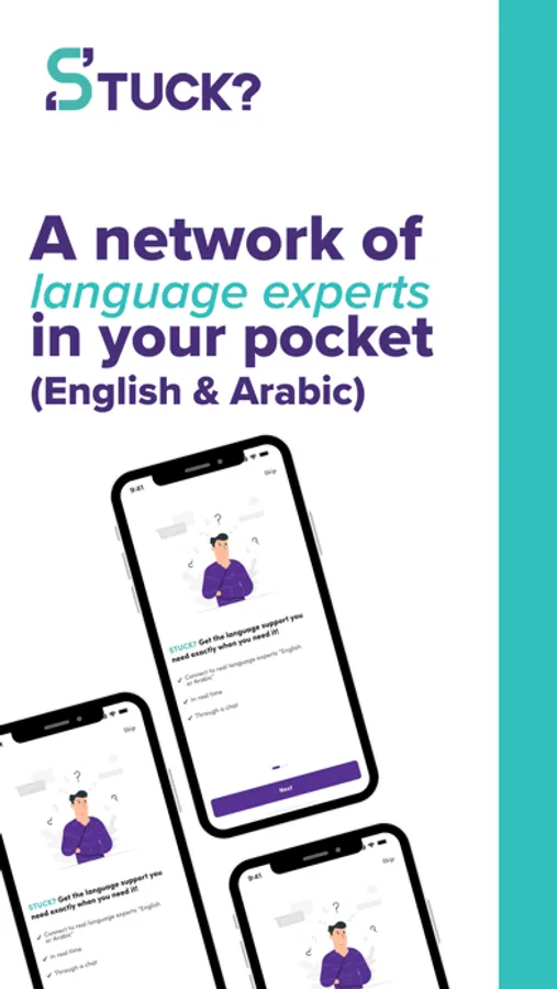 Stuck is an English language support app that connects you to a language consultant exactly when you need to. Through a chat with a language professional you get the support you need on any task you're working on, whether it is for work, social media, school or anything else. Whatever you're trying to phrase, whatever you want to edit or whatever you're stuck on, our consultants, who speak both English & Arabic, will help you perfect it. Stuck? We help you say it!
