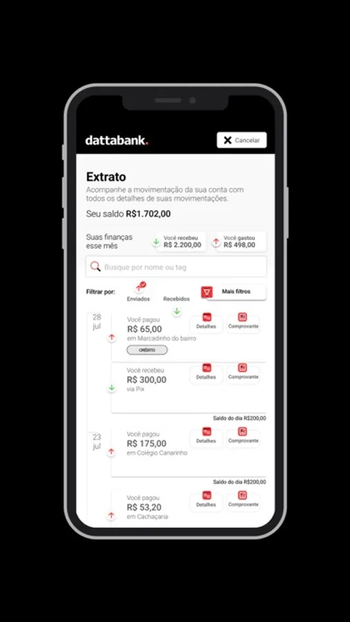 Ferramenta completa para gerenciar sua conta digital Dattabank de onde você estiver.