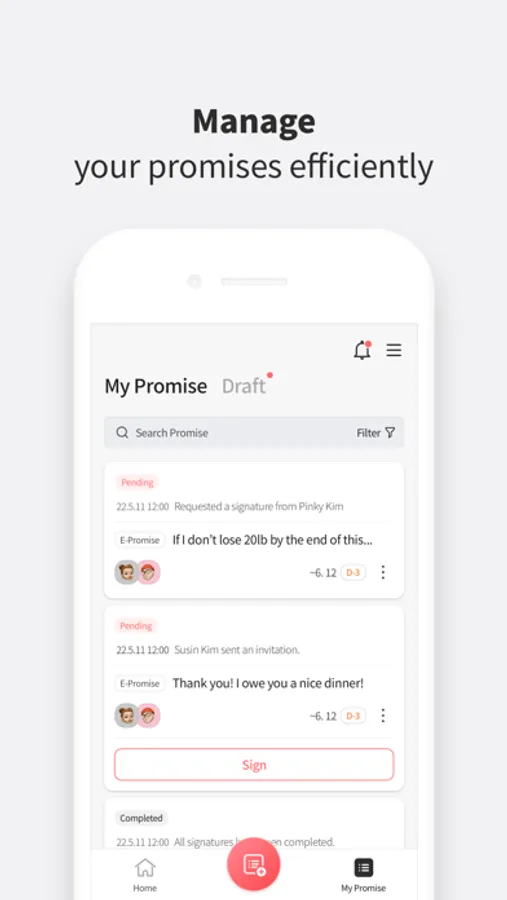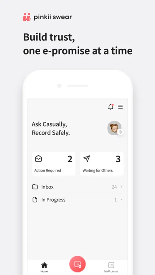 Pinkii Swear is a smart, efficient and user-friendly mobile app that helps you keep track of your promises and commitments. With a simple and intuitive interface, Pinkii Swear makes it easy to create, manage and track your promises in real time. Whether it's a promise you made to yourself or a commitment you made to others, Pinkii Swear has got you covered. You can see a progress bar to help you keep track of your progress and share your progress on social media. Pinkii Swear is the perfect tool for anyone who wants to keep their promises and build a more reliable and trustworthy reputation.