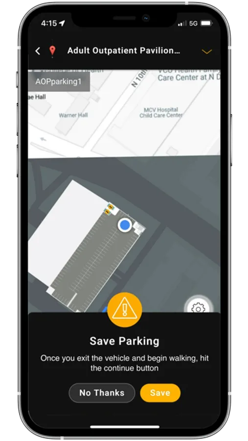 Personalized turn-by-turn directions to destinations across VCU Health. VCU Health's Way Finder app helps you navigate from your home to VCU Medical Center. Type in your destination and our app will recommend parking and link you to driving directions. Once you arrive at our downtown Richmond campus, our app gives you an option to save your parking location. It provides real time turn-by-turn guidance from the parking deck to your destination inside and back to your saved location. The app works indoors on campus and allows you to do a virtual walk-thru before arrival.