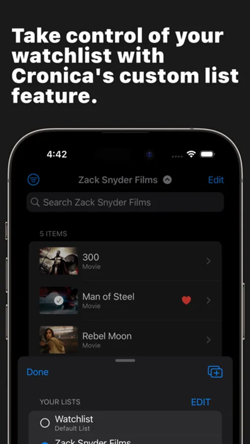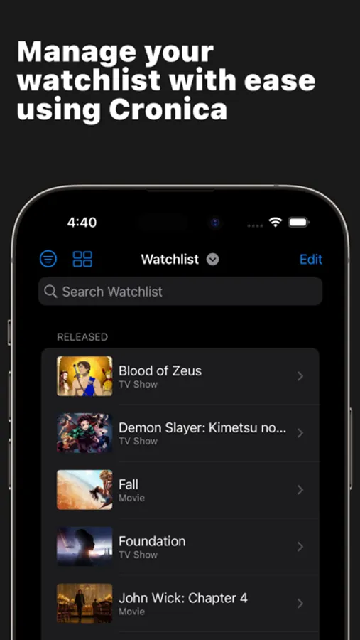 Introducing Cronica, the sleek and minimalist watchlist app for movie and TV enthusiasts.
