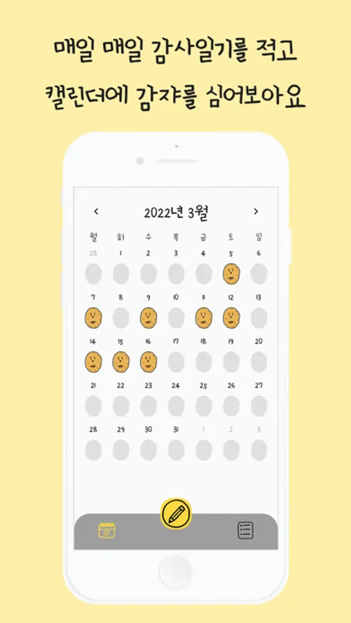매일 매일 3가지 감사한 일을 기록해나가면, 월별 캘린더에 감쟈가 채워지는 것을 확인할 수 있어요. 감쟈를 채워나가는 재미로 감사 일기를 꾸준히 써나갈 수 있습니다.