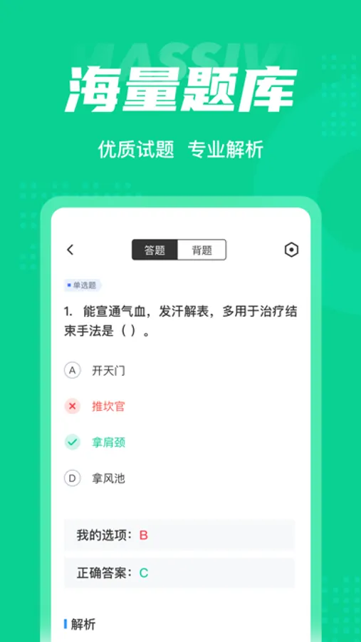 小儿推拿保健师聚题库是一款针对小儿推拿保健师考试的应用,主要功能特点包含: