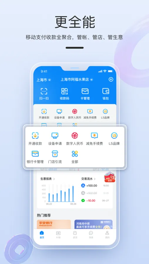 拉卡拉APP是一款为商户量身打造的移动版店铺经营工具,成为商户聚合收款、门店经营、采购备货的全能助手,助力数字化升级。