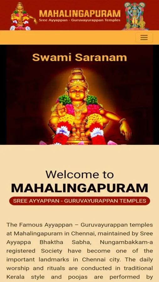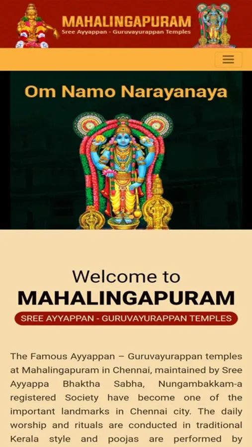 The Famous Ayyappan – Guruvayurappan temples at Mahalingapuram in Chennai, maintained by Sree Ayyappa Bhaktha Sabha, Nungambakkam-a registered Society has become one of the important landmarks in Chennai city.