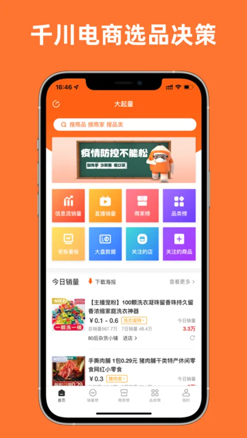 大起量追踪各内容电商渠道(巨量千川、信息流推广、直播电商)的潜力爆品、商家推广策略、最新爆量素材,覆盖广告信息流、短视频、直播推广链条,助力商家快速选品,快速大起量。