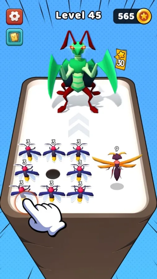 Quickly synthesize your insects into giant monsters. The higher the level of the monster, the stronger the attack and defense. This is the most important skill in this game, please master it