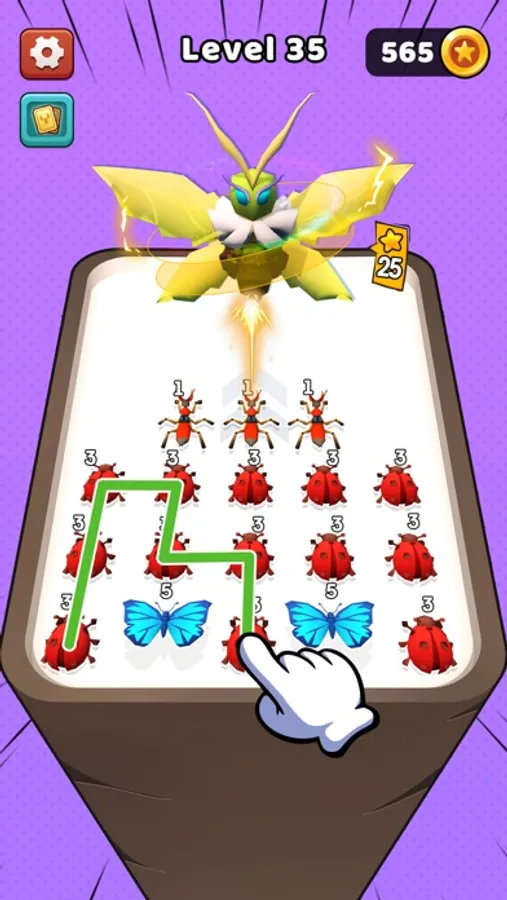 Use your wits to combine insects & fight against enemies! Control merge arena!