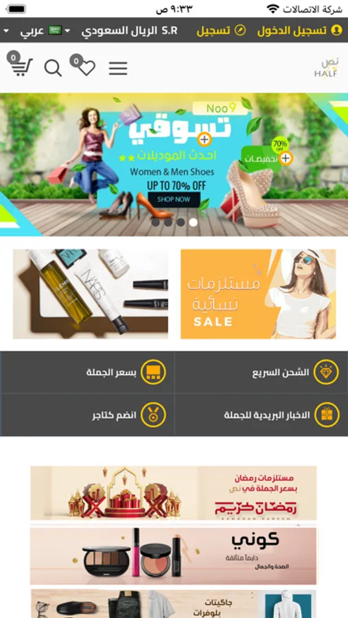 متجر نص / Half يربط متجر تجار الجملة بالمستهلكين لذلك تميزنا بأسعار أغلب المنتجات بسعر الجملة وبجودة عالية